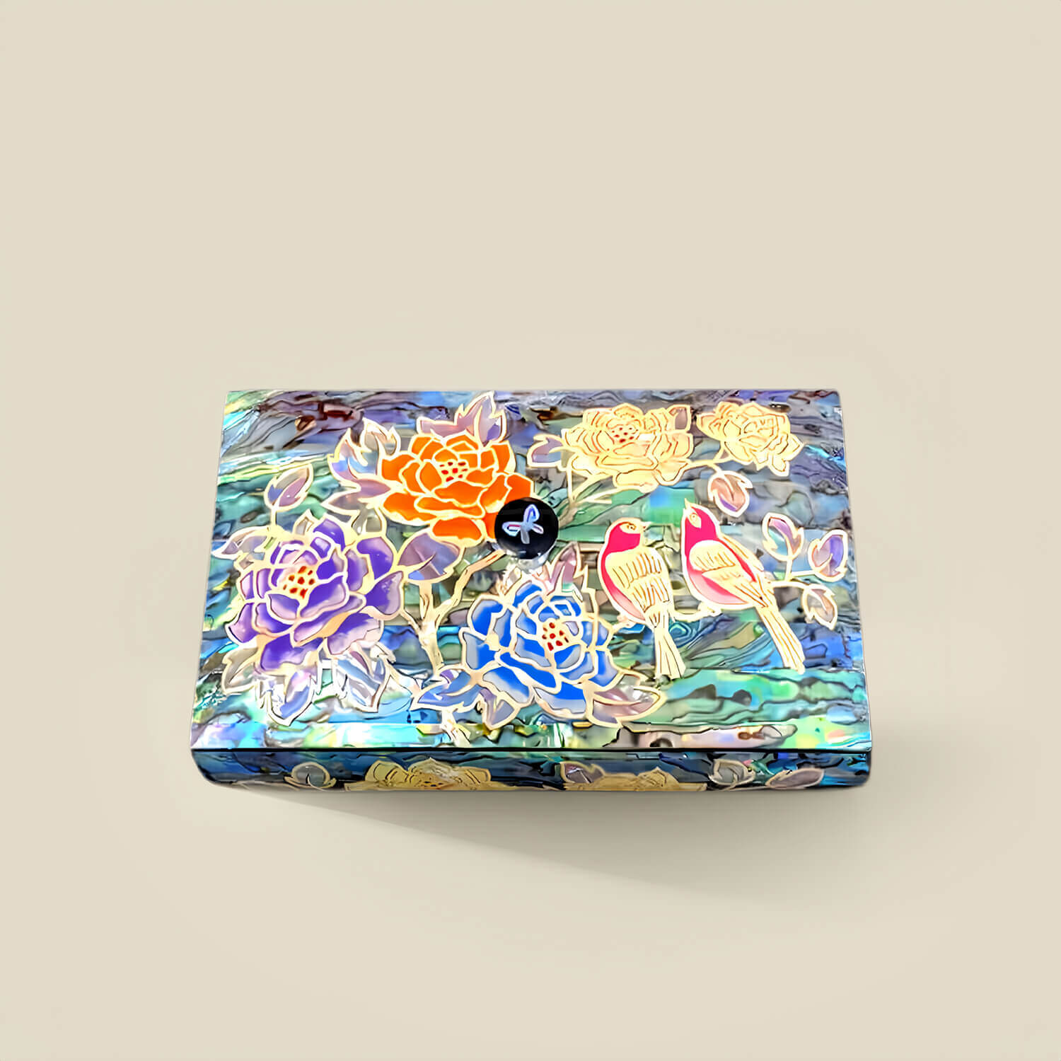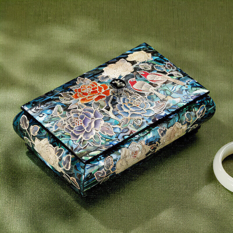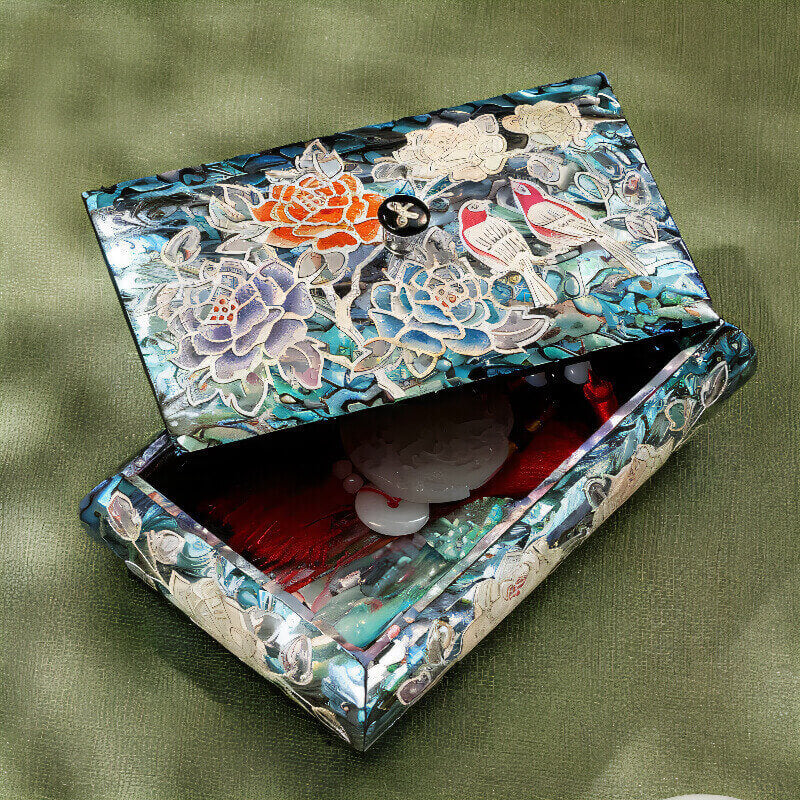 Handcrafted Jewelry Box with Inlaid Colored Shells QS17