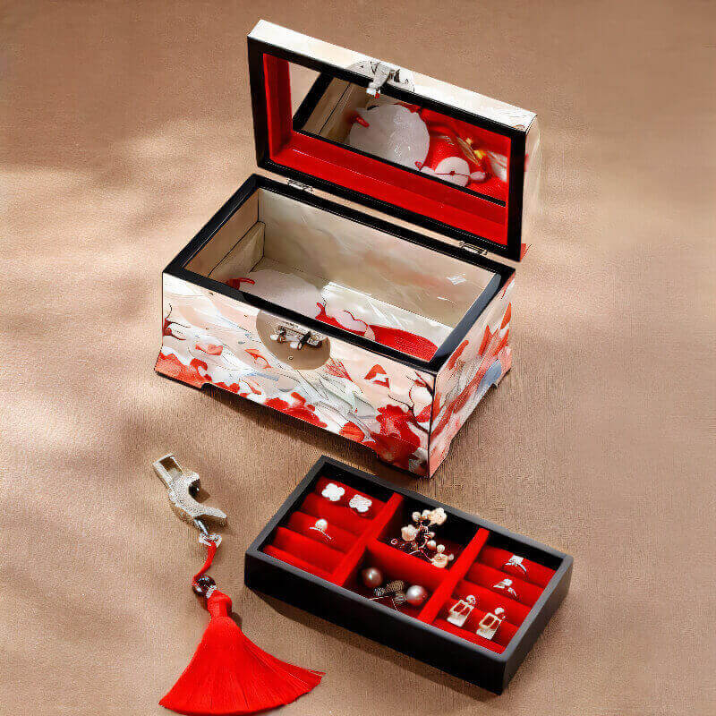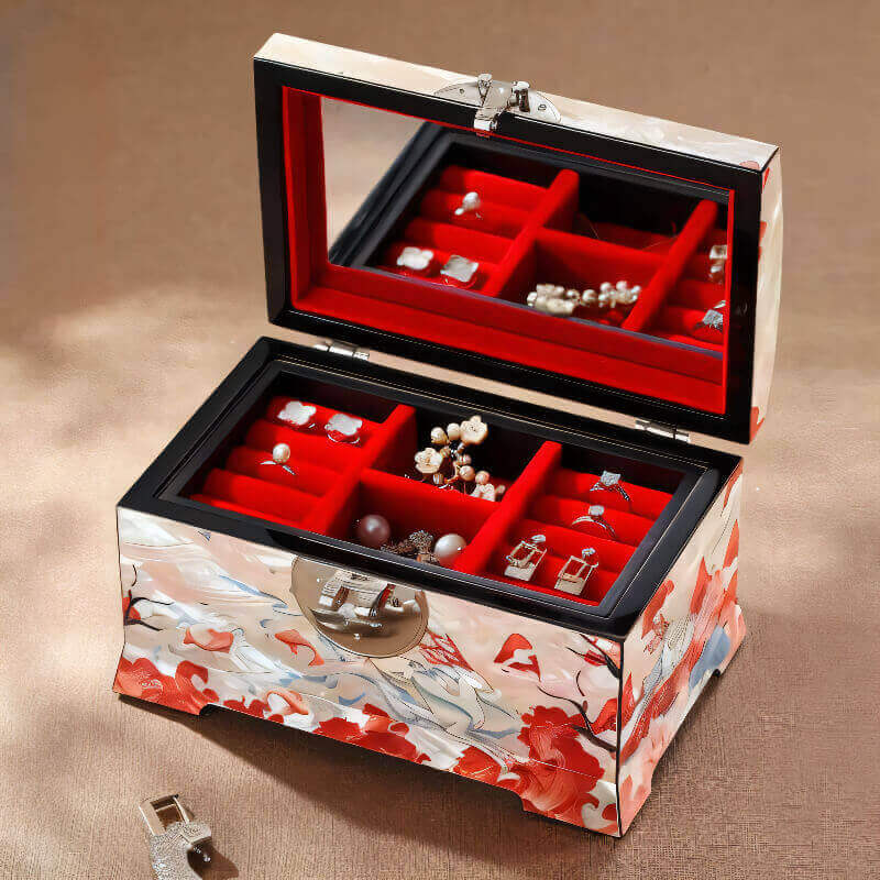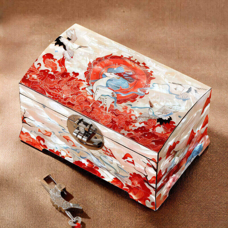 Handcrafted Jewelry Box with Inlaid Colored Shells QS18