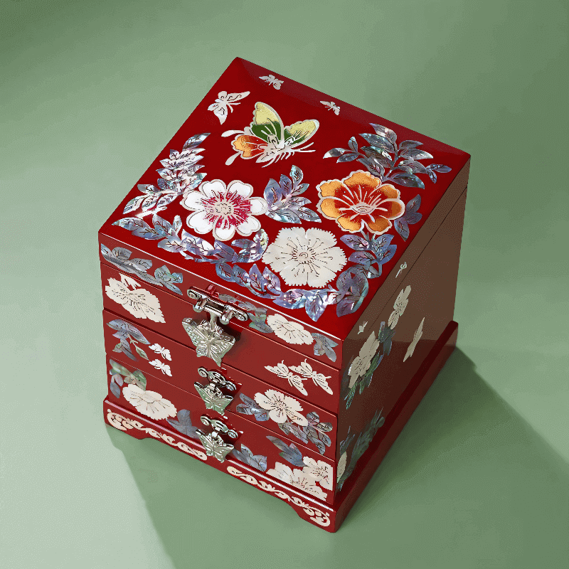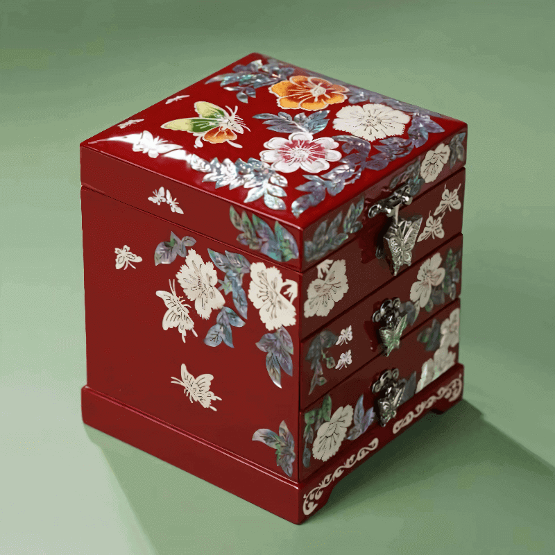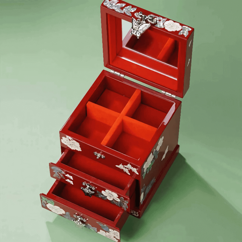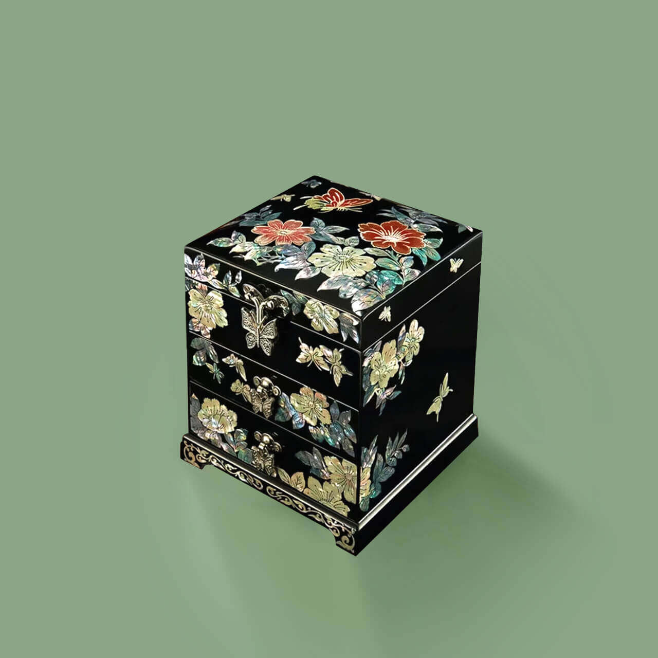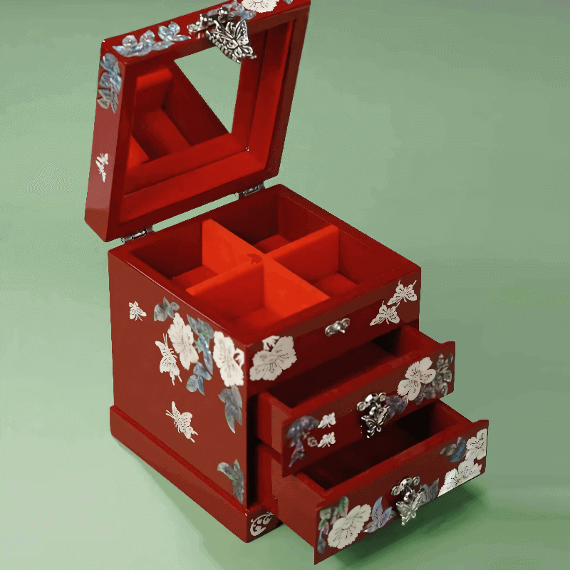 Handcrafted Jewelry Box with Inlaid Colored Shells SH04